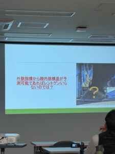金田氏から蹄匣内部における蹄骨配置を予想するための外貌指標の検討及び、蹄の外貌指標を用いたPA評価に基ずく跛行率との関係を解説していただきました。